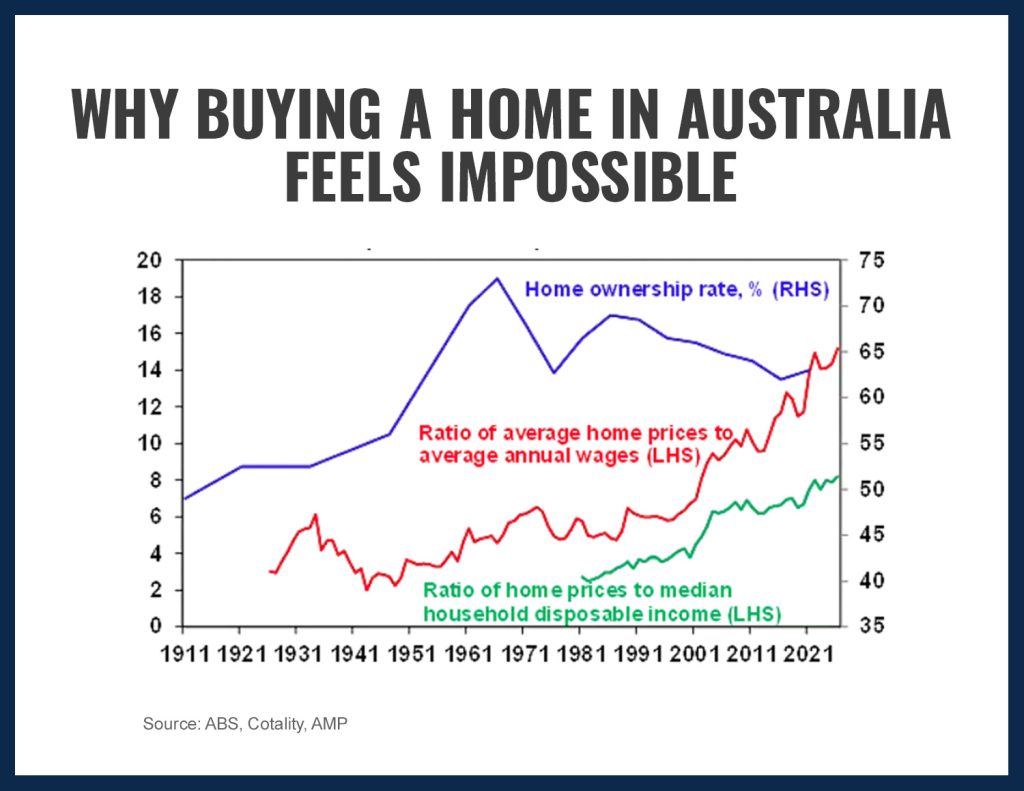 AMP chief economist, Dr Shane Oliver, highlighted in November 2025 that the ratio of average dwelling prices to average wages and household income has both more than doubled since 2000.