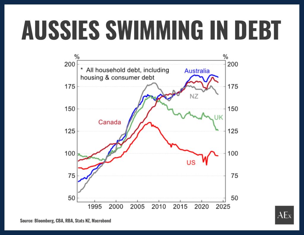 Above: Australian household debt-to-income ratios hit 182% – among the highest in the developed world.