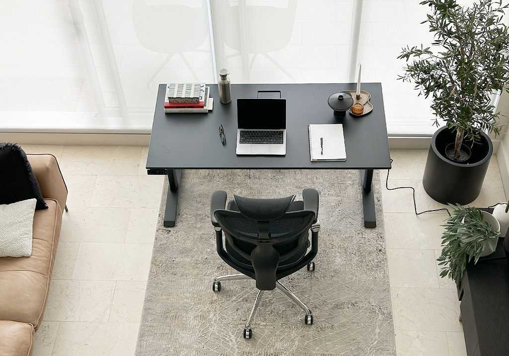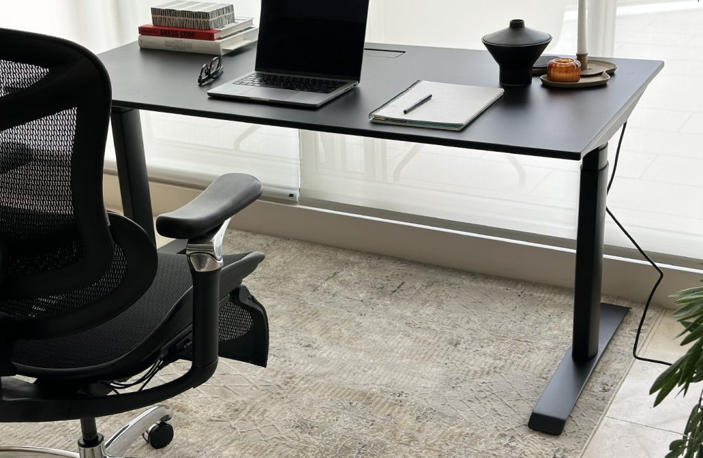 Combined with narrow leg columns, which I’ll talk about in a moment, it creates a very elegant, minimalistic-looking desk.