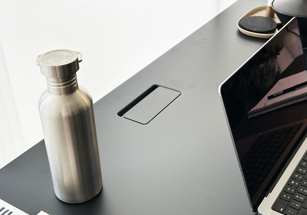 You can run all your cables through Ascent’s cable cutout straight into the optional ($79) cable management tray underneath the desk.